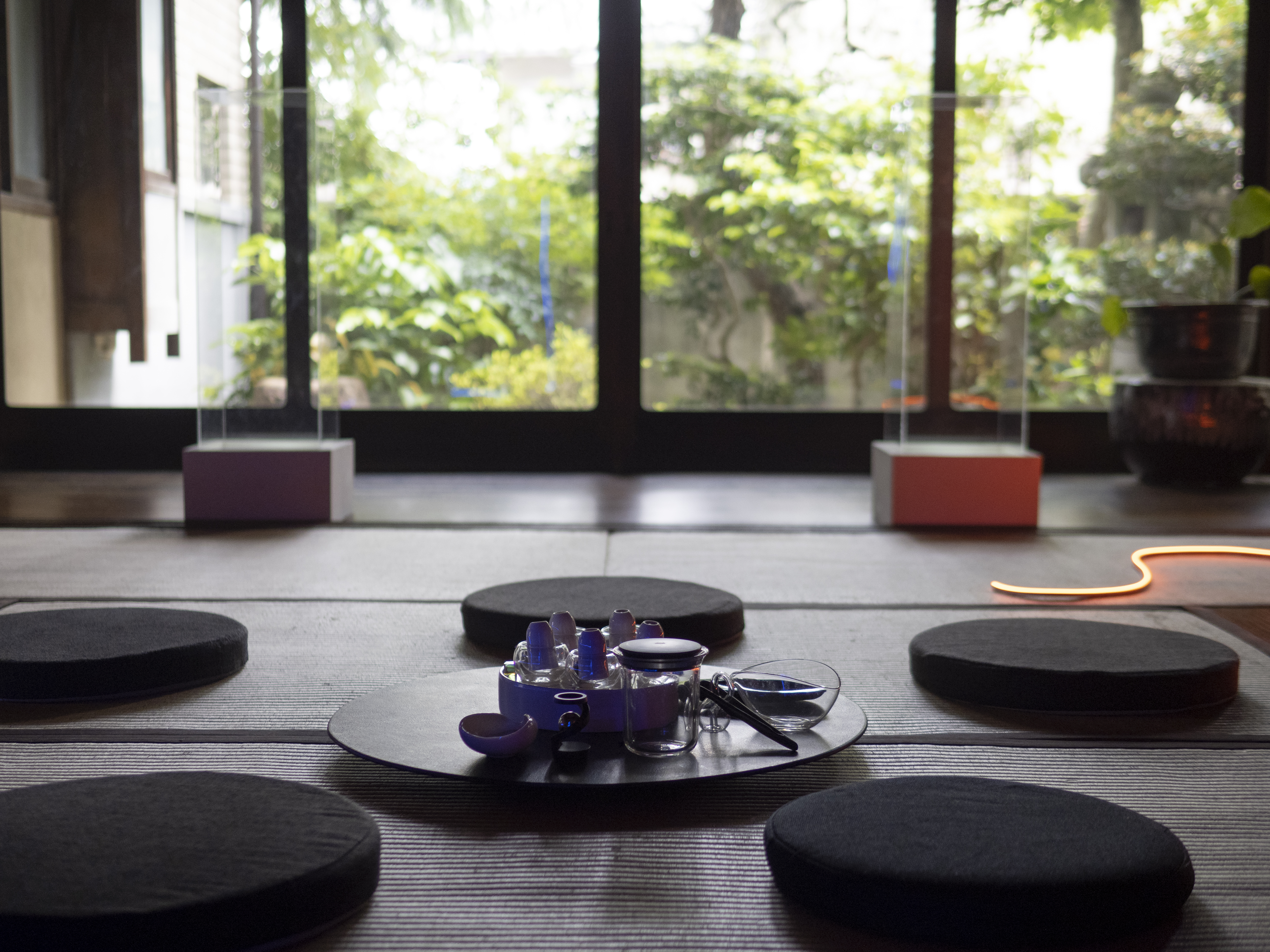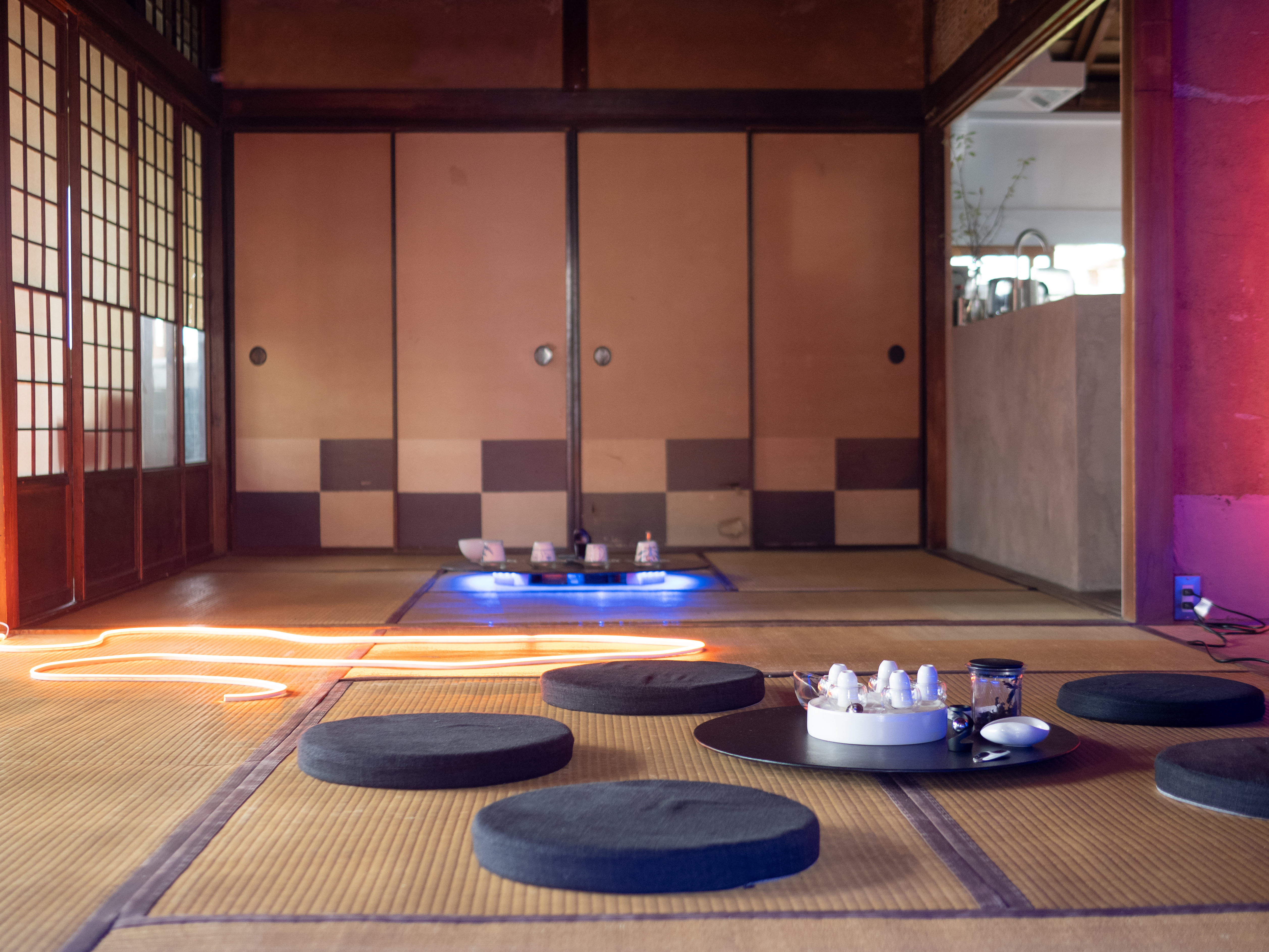 Le premier épisode du cycle 藝茶 (Geicha / Art Tea) s’est tenu à Bridge Studio, autour de la pratique flottante de l’artiste-curateur Midorikawa Yutaro, Ukicha, invitée pour la première fois à Kyoto. Ensemble, nous avons mêlé thé, parfums, souvenirs et fragments de projets passés : une dégustation d’oolong taïwanais à l’aide de smelling cups, une réflexion sur le renouvellement du rituel du thé à l’époque contemporaine, puis une « dégustation de parfums » en soba choko, issus du Museum of Contemporary Art Fukushima et de rituels collectifs comme Scents of Community. Des échos de projets antérieurs – Monomi ou les créatures spectrales de Metapets – se sont invités dans la cérémonie, tissant une atmosphère de gestes subtils, de textures et de silences partagés.