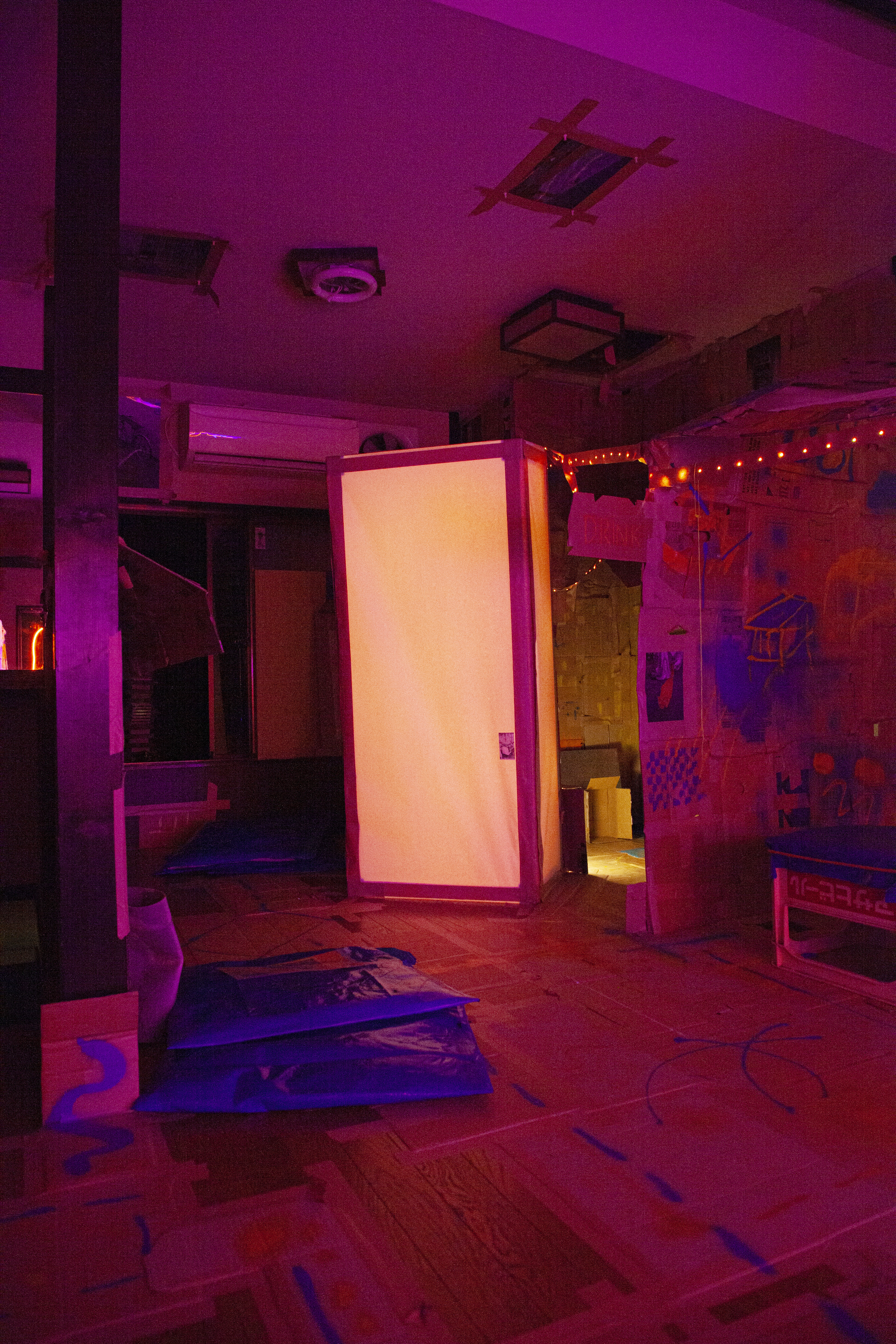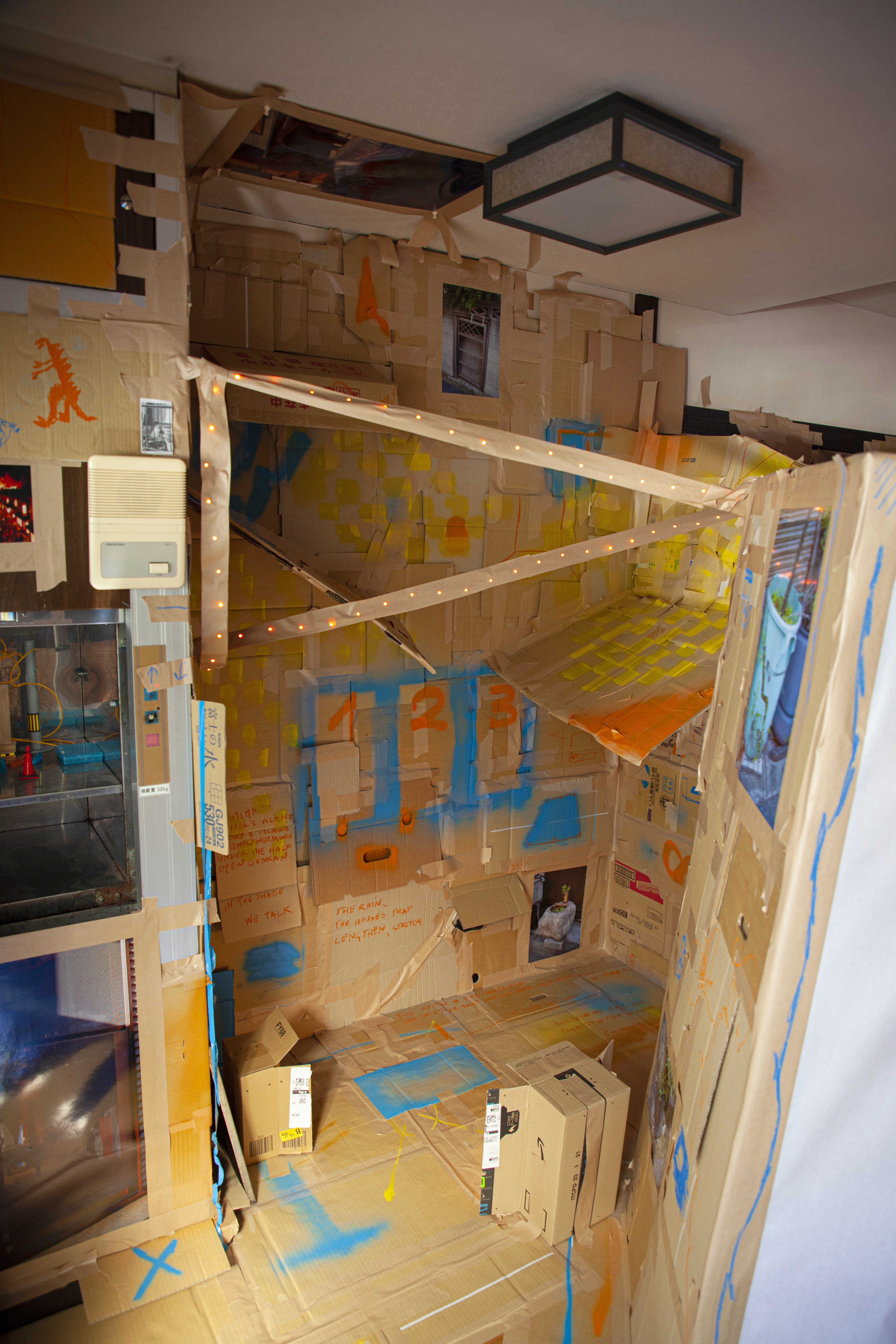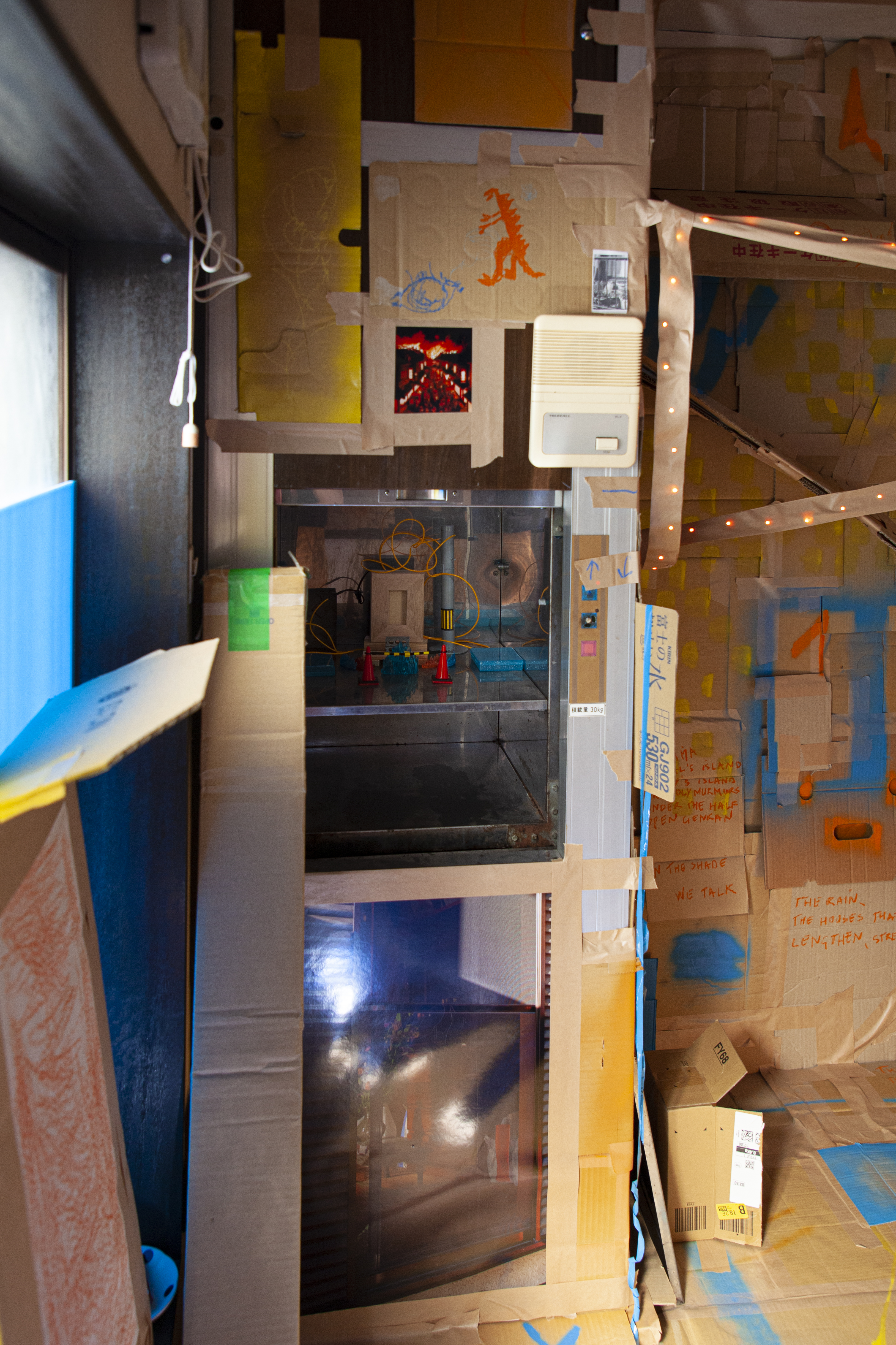 Le local vacant sera ainsi transformé à la fois en lieu de vie, espace d’exposition, scénographie, et en sculpture - à l’échelle du bâtiment. L’espace sera donc également rythmé par de multiples événements venant animer le yokocho. Dans l’objectif de ré-insuffler de la vie dans ce lieu abandonné, comme une ode à la socialité si particulière des architectures aux ruelles étroites, héritées de la catastrophe de 1923. Ainsi sera composé un espace pour amateurs d’art mais aussi pour ceux n’ayant pas d’inclination spécifique pour les événements culturelles, dans une forme accessible et gratuite, ouverte à des interventions d’artistes et non-artistes en son sein. Ainsi, Disconoma fait fluctuer la présence de l’œuvre et de l’artiste - respectivement remplacés par un espace libre et riche de ses possibles, et une multitude de participants.