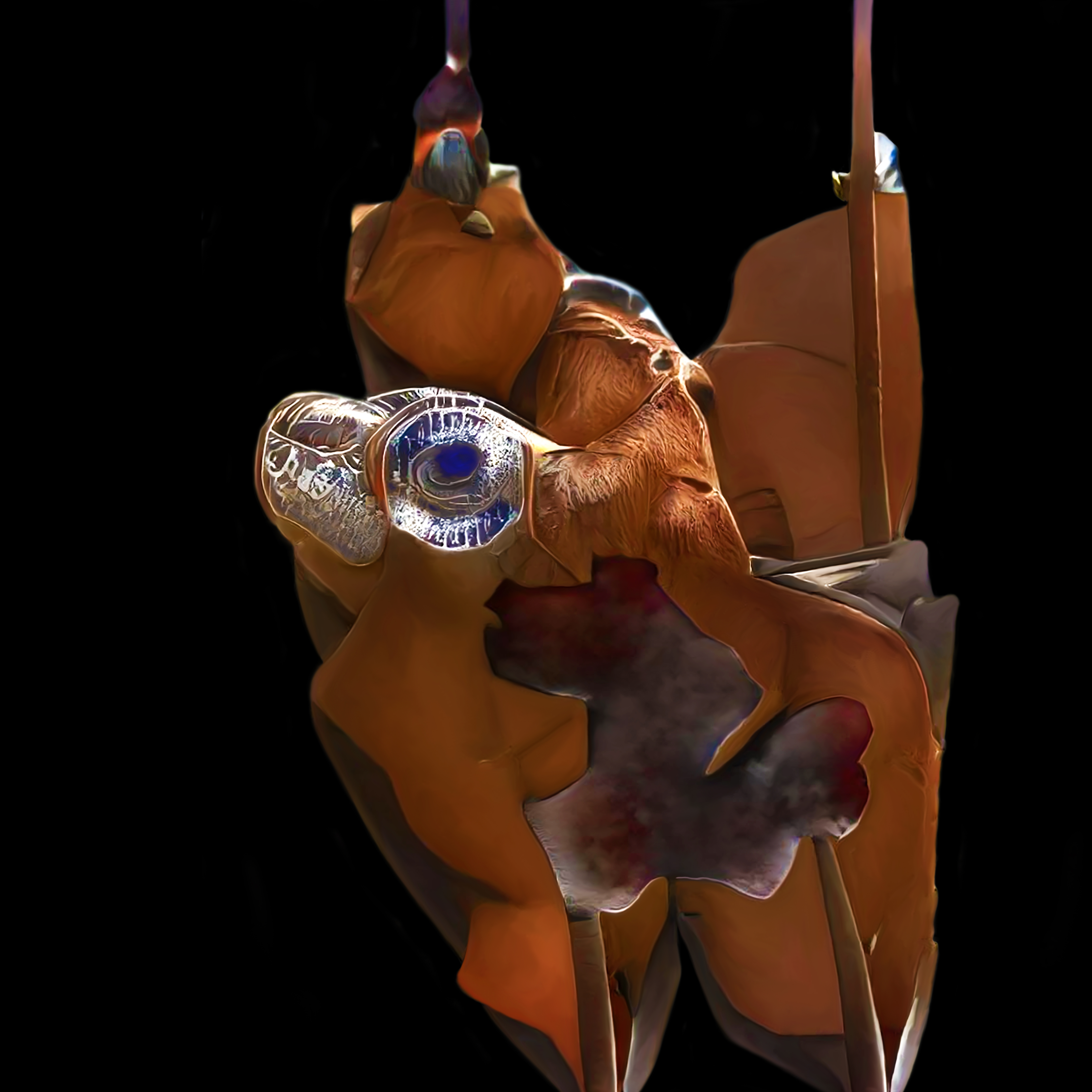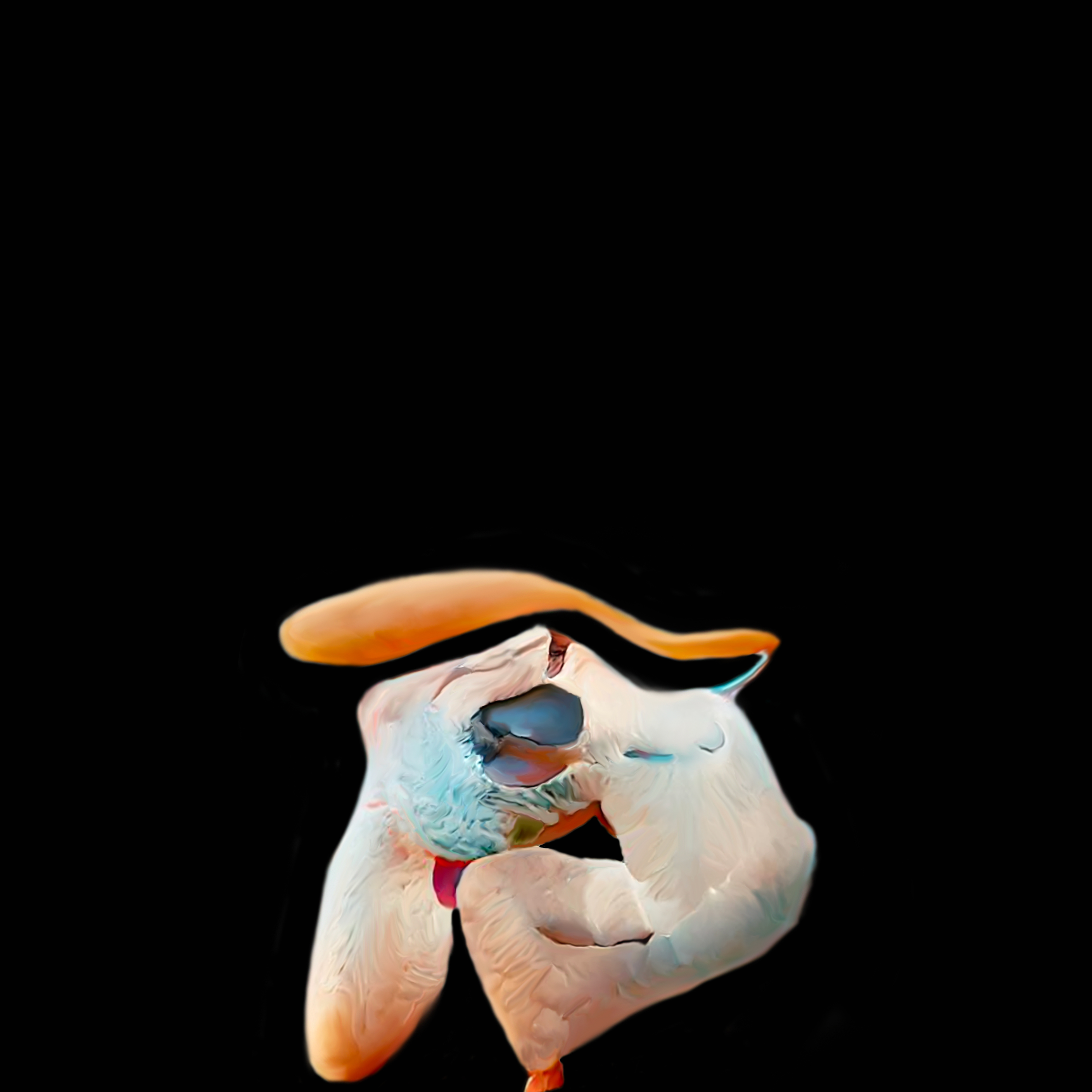 Metapets is a hybrid series combining artificial intelligence, poetry, and digital painting, born from a collaboration with neural networks capable of generating images from textual descriptions. The series explores the limits of AI by introducing complex instructions inspired by surrealist poetry and its unexpected formulas—echoing variations of Lautréamont’s famous phrase: “The chance encounter on a dissecting table of a furry animal and an alien jellyfish.” These prompts produced accidental and unforeseen results—poetic glitches—that evoke an artificial unconscious, a dreamlike or delirious state specific to the machine.